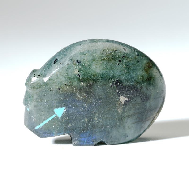 The vibrant hues of blue within the stone made the bear gleam with an otherworldly glow, catching the light in mesmerizing ways. The intricate details of the heartline added a touch of love and symbolism to the piece, making it not just a stunning work of art but also a meaningful keepsake. This bear made out of labradorite is not just a simple ornament; it is a statement piece that brings beauty, warmth, and positive energy into any space it inhabits.