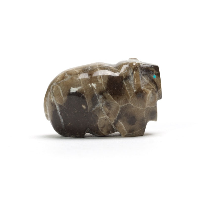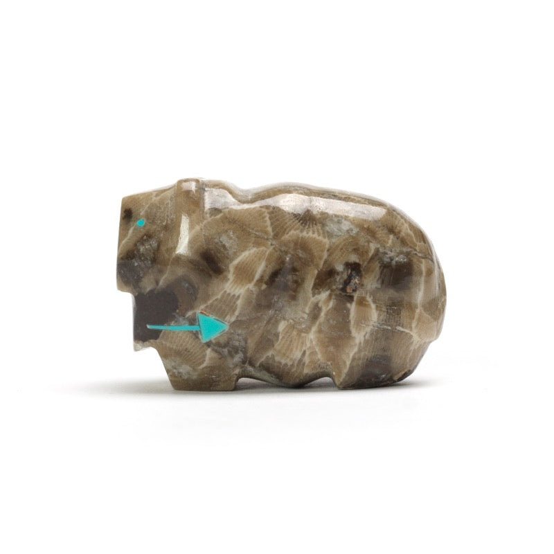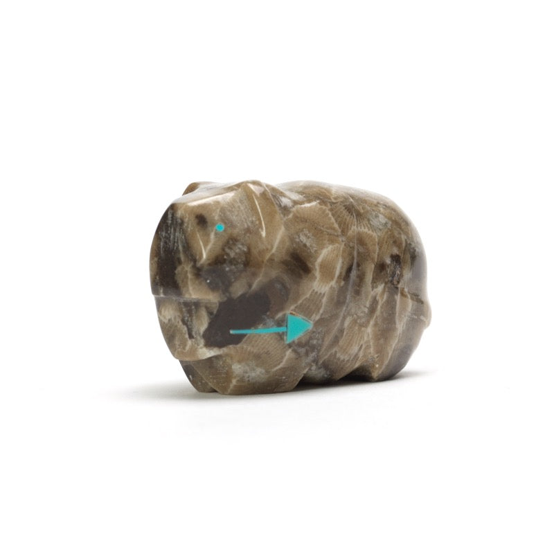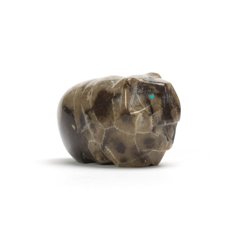 Buffalo (Si:wolo) is especially important to the Plains Indians. These magnificent animals were the basis of their lifeway before they were hunted to extinction by the white man. While not a traditional fetish subject for the Zunis, all animals have meaning and Bison reminds us of abundance and prayer.