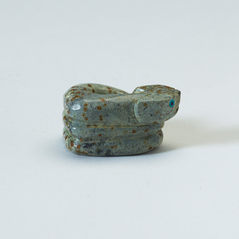 Behold, the magnificent creation of a carved snake out of argite! This rare and precious mineral is known for its unique green hue and remarkable durability, making it the perfect medium for crafting intricate carvings. The skilled artisan behind this masterpiece has expertly captured the sinuous curves and menacing stare of a coiled serpent, imbuing it with an aura of mystique and power.