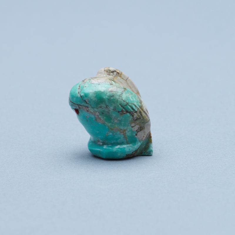 The rich green hues of the variscite contrast beautifully with the intense crimson of its eyes, creating a visual spectacle that is both enchanting and slightly unnerving. The flawless craftsmanship and attention to detail in this piece speaks to the skill and artistry of Alvin, leaving no doubt that this owl is not just a simple ornament but a symbol of knowledge, foresight, and insight beyond mortal understanding.