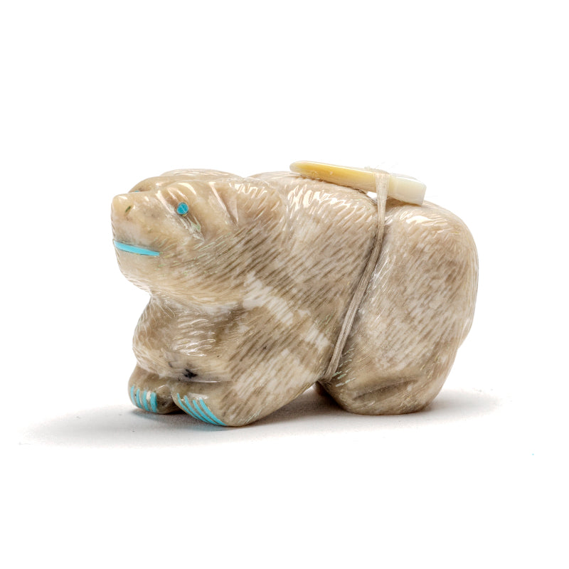 Bear (Anshe): Bear was the principal animal for the Pueblo People and they are the most prevalent subject of Zuni fetishes. Bear fetishes are used for healing, protection, strength, journeying, mothering, hunting and gathering. Bear‚ hibernation reminds us of the value of going within.