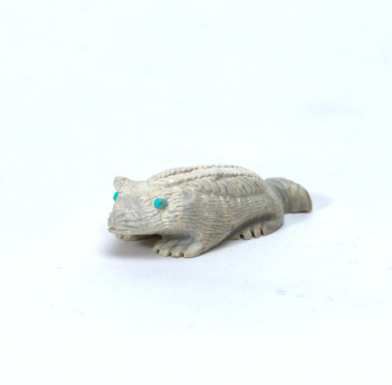 The cool tones of the marble contrasted with the vibrant blues of the turquoise create a striking visual impact that commands attention. Like the badger itself, this carving exudes a fierce determination and unwavering spirit that cannot be ignored. It serves as a reminder to embrace change, adapt to challenges, and always stand strong in the face of adversity. Truly a masterpiece worthy of awe and admiration.