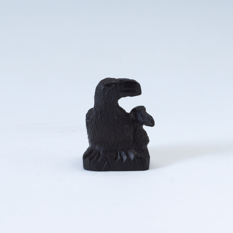 Jet, known for its protective properties, emanates a dark and enigmatic energy that surrounds these ethereal creatures. Their beady eyes seem to pierce through the veil of reality, revealing secrets long buried in the shadows. These ravens, guardians of the underworld and messengers between worlds, sit stoically as if waiting for some cosmic revelation to occur. The intricately carved details on their feathers reflect centuries of craftsmanship and reverence for these revered birds. Their presence invites whispers of prophecy and foreboding omens, as if they hold the key to unlocking mysteries beyond comprehension. In this moment, time seems to stand still as the double ravens command attention with their eerie beauty and enigmatic aura.