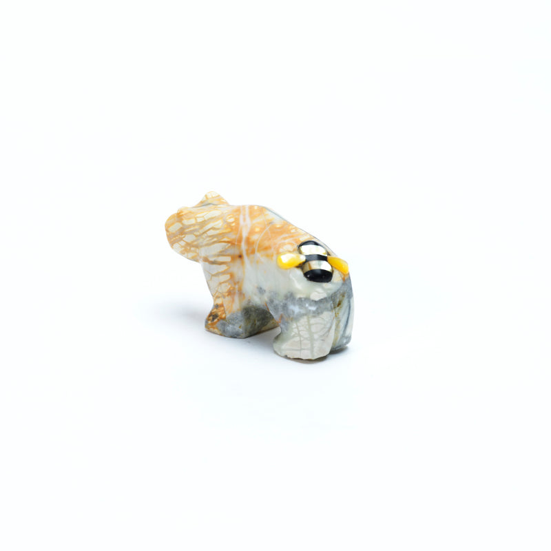 The depth of the brown Picasso marble creates a sense of mystery, as if holding the secrets of generations past within its very core. The dragonfly, with its delicate wings and vivid colors, symbolizes transformation and adaptability, making this piece not only visually striking but also spiritually profound. This carving demands attention, drawing you into a world where nature's power reigns supreme and every detail has significance.