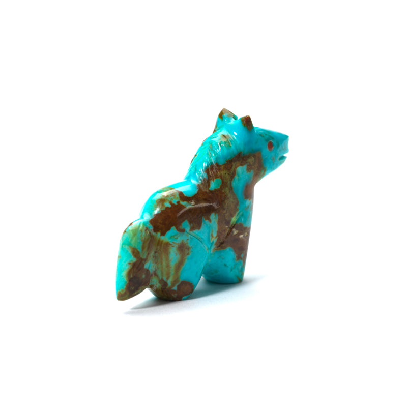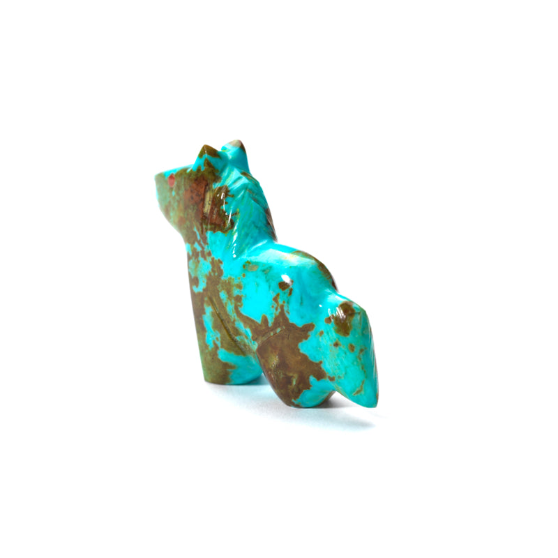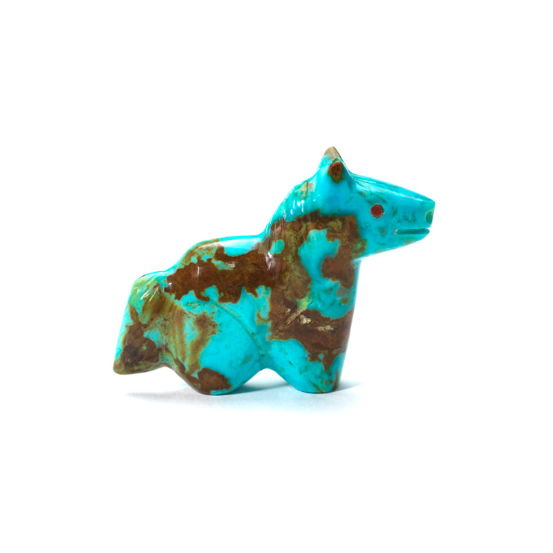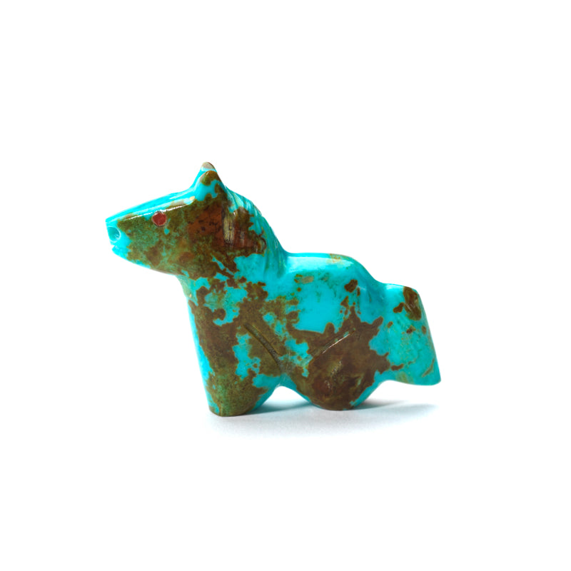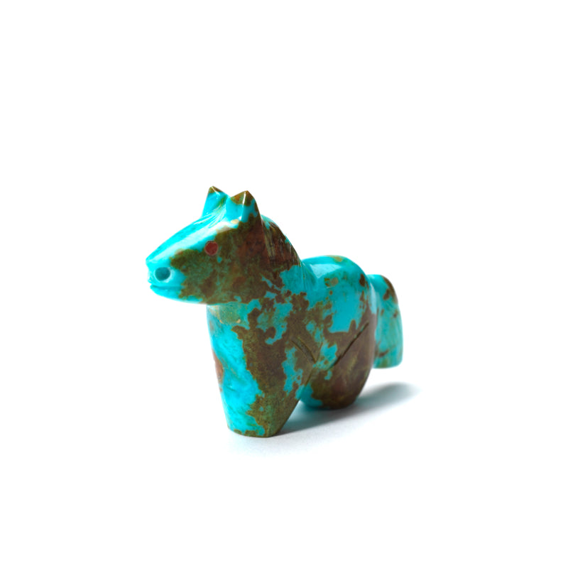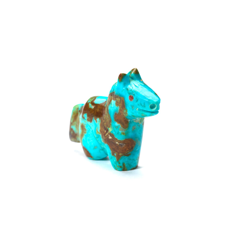 This little beauty is something special. The vibrant blue hues of the turquoise bring the horse to life, creating a sense of movement and grace that is simply mesmerizing to look at. And those coral eyes? They add a touch of mystique and personality to the piece, as if the horse has secrets to tell or stories to share. This unique combination of materials and colors makes for a truly striking work of art that stands out from the crowd.