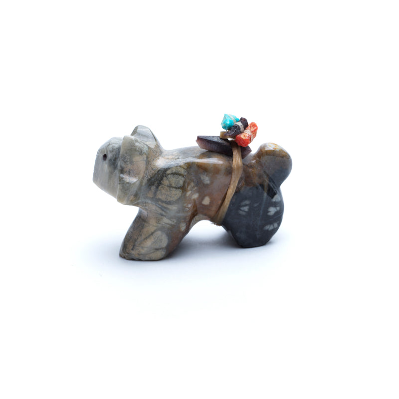 The grey Picasso marble, known for its dramatic veining and layered tones, gives the bobcat a shadowy, camouflage-like coat. Shades of charcoal, smoky grey, soft white, and hints of brown twist across its compact, muscular form like brushstrokes or ancient maps. The marbling seems to animate the surface, mimicking the dappled light of the forest floor or rocky terrain where the bobcat might prowl. Its stance could be crouched and alert, ready to spring, or mid-stride with a low, fluid grace. The black eyes, are small and intense—glistening like twin pools of night. They add a sense of stealth and intelligence, suggesting the bobcat is not just watching, but calculating—aware of every movement around