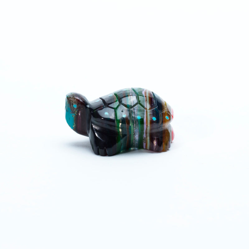 The form is compact and rounded, with a domed shell that echoes ancient, timeworn strength. The carving captures the gentle, grounded presence of the turtle, from the textured limbs to the slightly upturned head. Altogether, the carving feels both grounded and symbolic—an embodiment of protection, longevity, and balance.