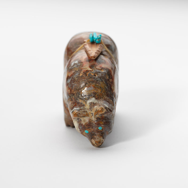 Bear (Anshe): Bear was the principal animal for the Pueblo People and they are the most prevalent subject of Zuni fetishes. Bear fetishes are used for healing, protection, strength, journeying, mothering, hunting and gathering. Bear‚ hibernation reminds us of the value of going within.