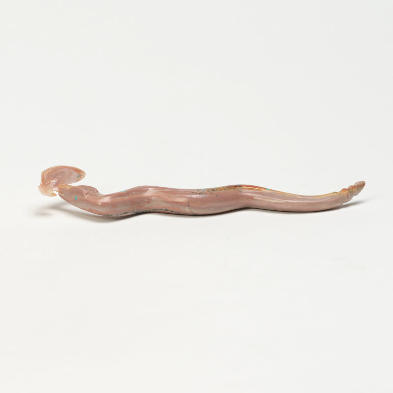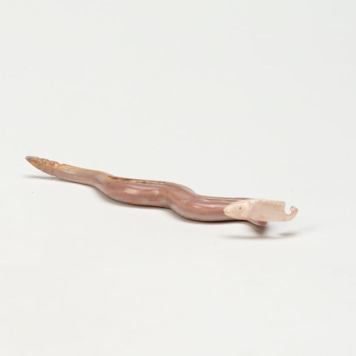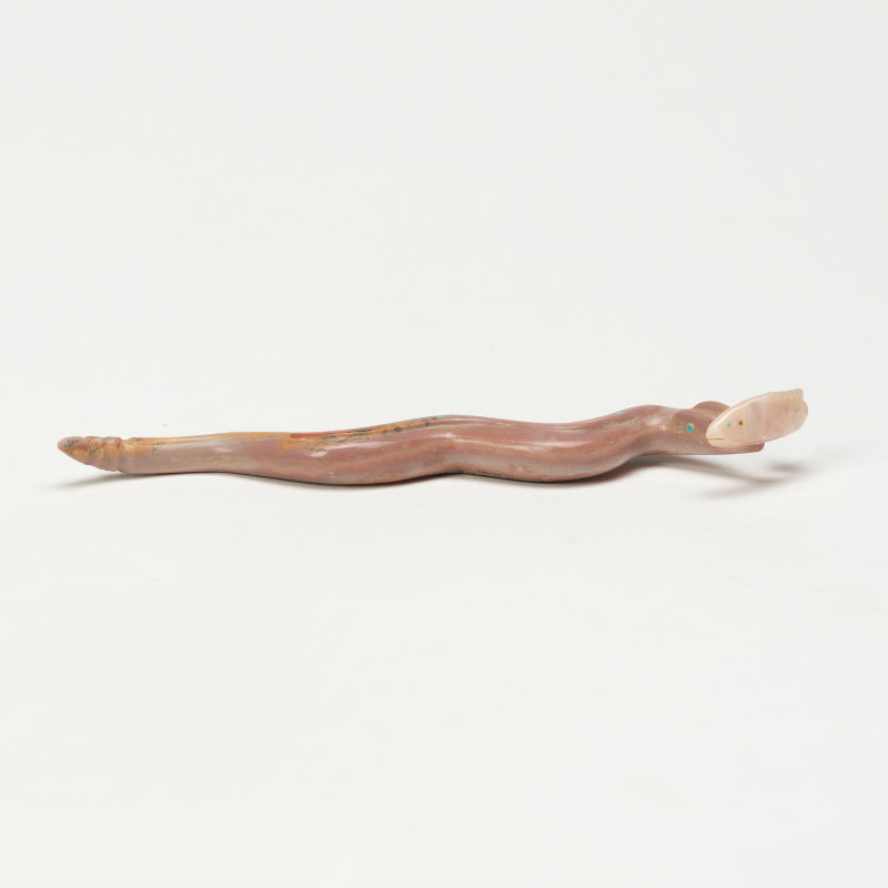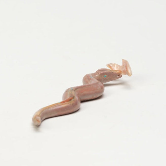 The choice of dolomite as the medium adds an earthy feel to the piece, capturing the essence of wilderness effortlessly. The serpent itself is meticulously crafted, each curve intricately defined to create a sense of movement frozen in time. And those mesmerizing turquoise eyes— they seem to hold a secret wisdom that can only be unlocked by those who dare to truly see.