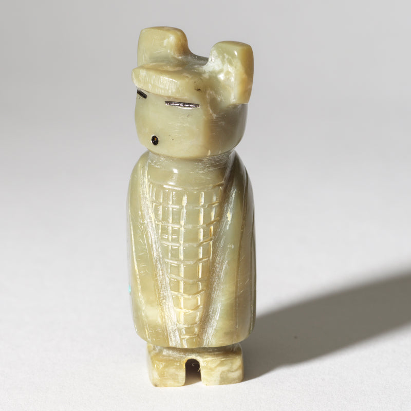 Usually the maiden fetish will be emerging from corn (the corn maiden) or she will have whorls of hair on the side of her head, signifying that she has not had a child. The mother fetish also can be emerging from the corn (the corn mother) and she will have children with her or look pregnant. The grandmother usually has a shawl over her head and no corn represented on her body.