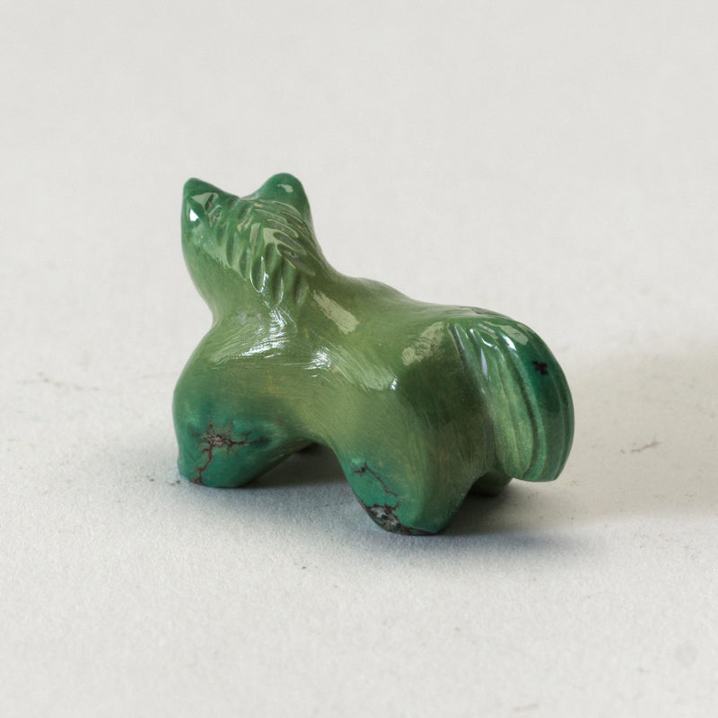 The vivid color of the turquoise stone adds a sense of depth and richness to the intricate details of the carving, creating a truly mesmerizing piece that is sure to captivate any admirer.