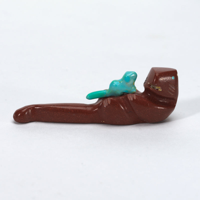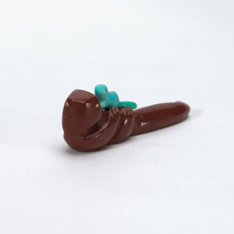 Known for playfulness, adaptability, and strong family ties, the otter is lovingly captured in this intimate scene. The combination of earthy pipestone and luminous turquoise makes this carving both emotionally meaningful and visually striking — a tender celebration of love, protection, and connection.