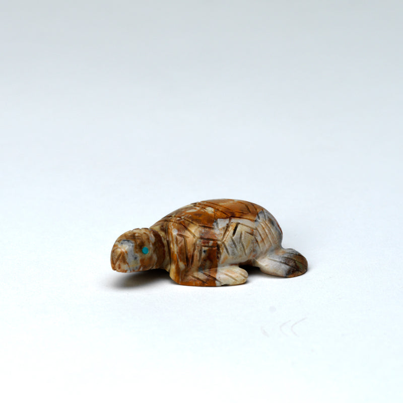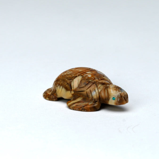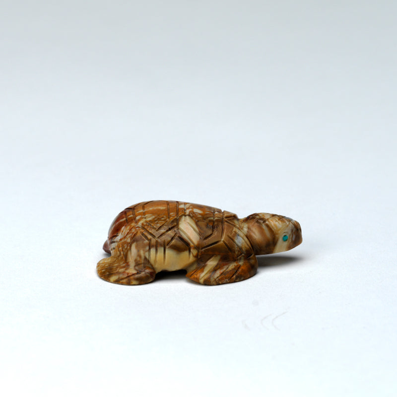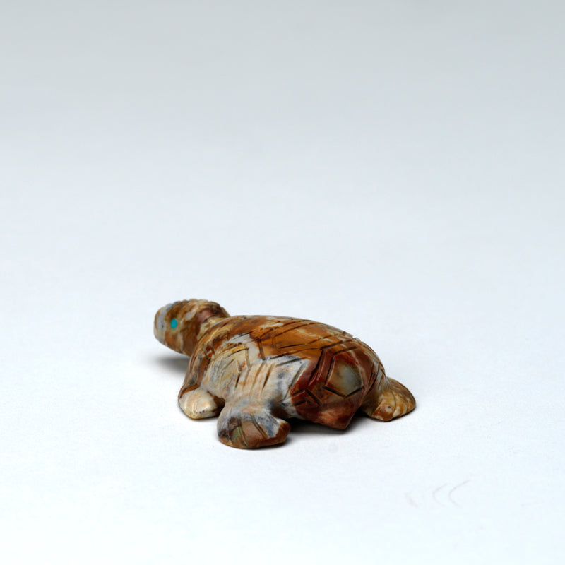 The picasso marble adds a touch of elegance with its swirls of rich browns, blacks, grays, and creams that form an organic and mesmerizing pattern. This turtle looks so lifelike that you almost expect it to crawl away at any moment.
