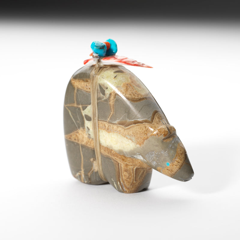Bear (Anshe): Bear was the principal animal for the Pueblo People and they are the most prevalent subject of Zuni fetishes. Bear fetishes are used for healing, protection, strength, journeying, mothering, hunting and gathering. Bear‚ hibernation reminds us of the value of going within.