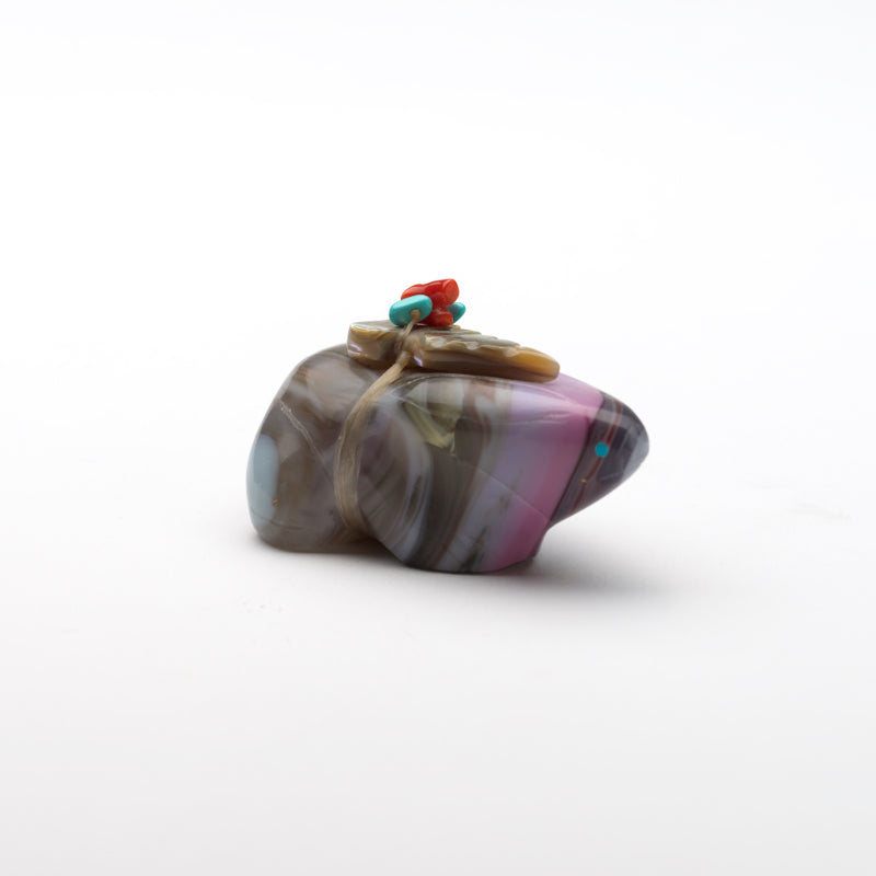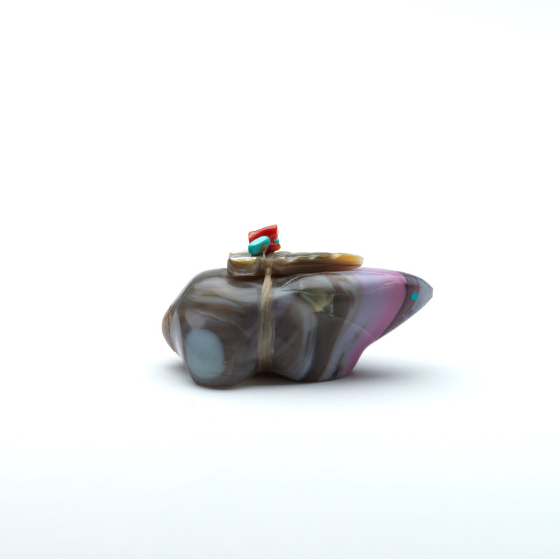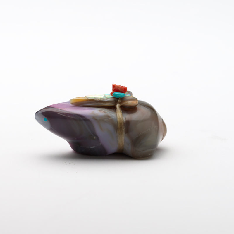 This stunning artwork showcases Boone's mastery in glass carving. The choice of colors adds a touch of whimsy to the piece, while the intricate details highlight Boone's attention to precision. The addition of an abalone arrowhead bundle brings a unique cultural element to the sculpture. The contrasting textures of glass and abalone create a visually captivating juxtaposition. It is evident that Boone's craftsmanship is guided by both technical expertise and a deep appreciation for aesthetic beauty.