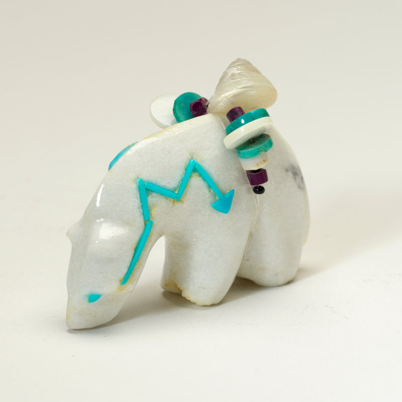 Bear (Anshe): Bear was the principal animal for the Pueblo People and they are the most prevalent subject of Zuni fetishes. Bear fetishes are used for healing, protection, strength, journeying, mothering, hunting and gathering. Bear‚ hibernation reminds us of the value of going within.