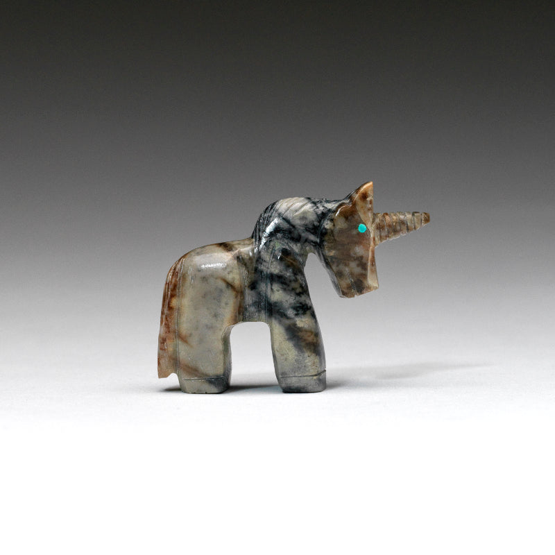 Unicorn: a non-traditional Zuni animal fetish carving.