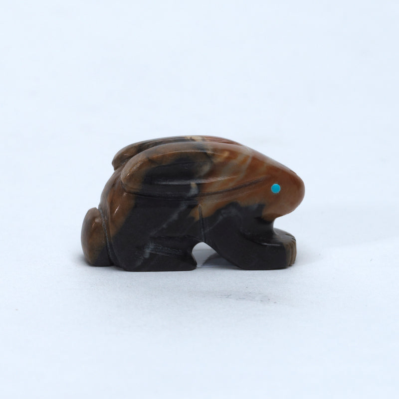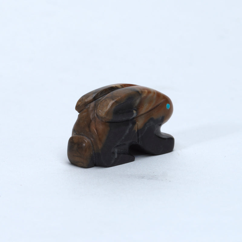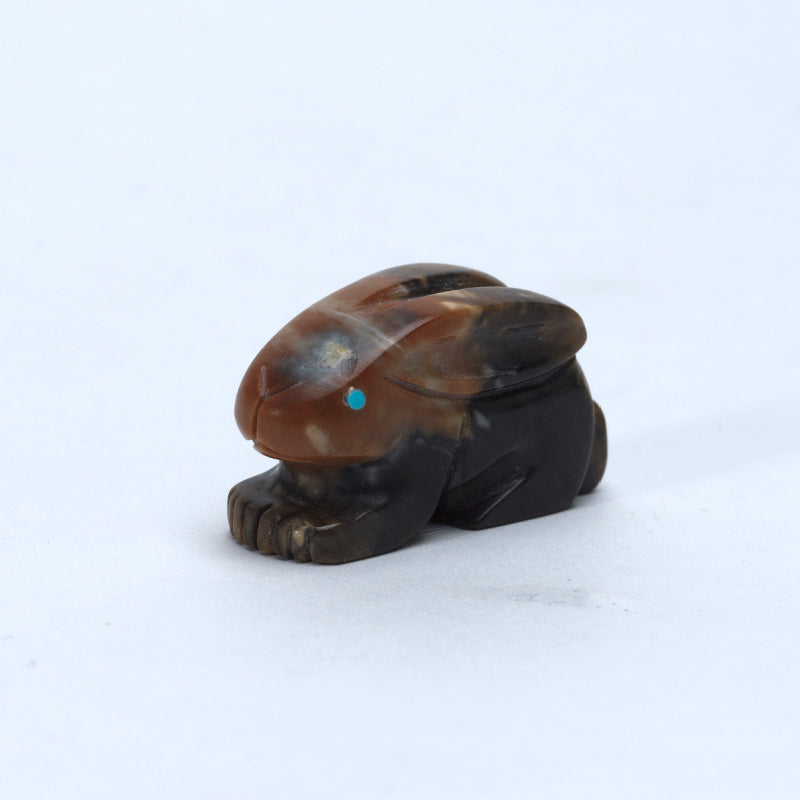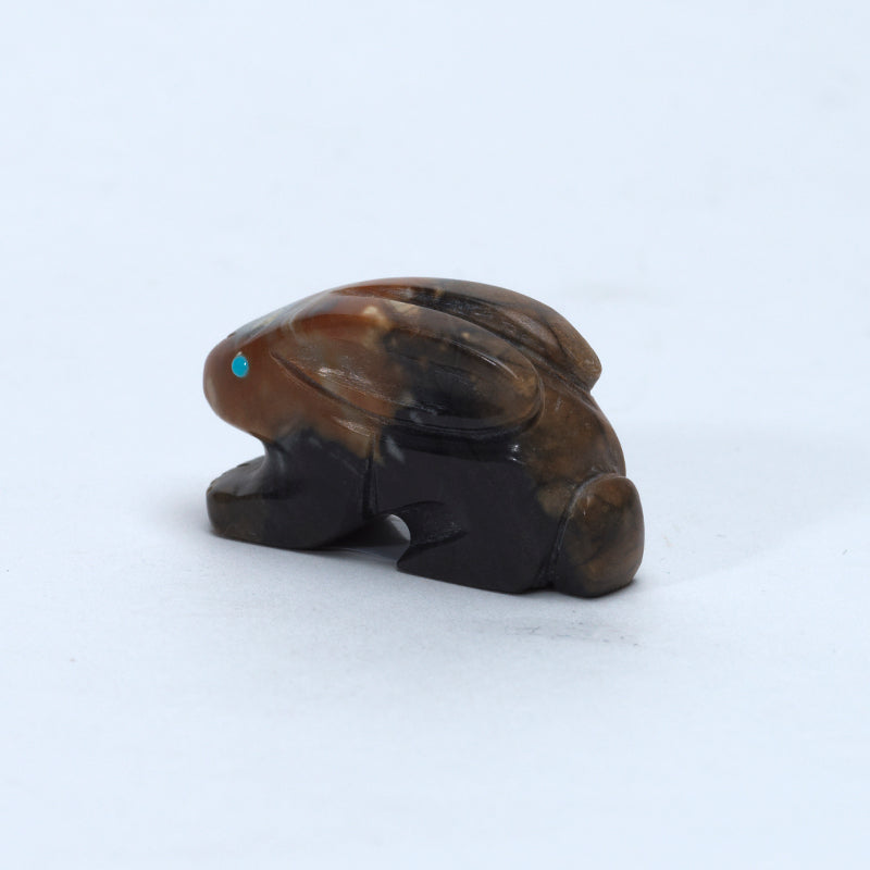 Its smooth, polished form captures the gentle curves of the rabbit’s body, from its rounded back to its ears. The turquoise eyes provide a bright, vivid contrast against the darker marble, bringing a lively, attentive expression to the piece. Elegant, grounded, and full of character, this Picasso marble rabbit combines natural beauty with thoughtful craftsmanship.