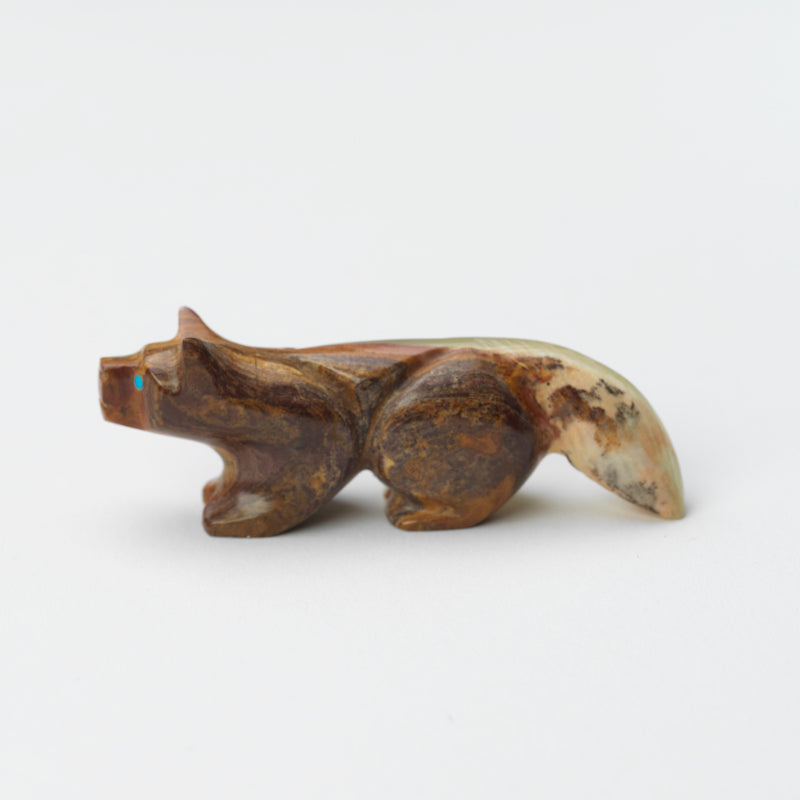 The wolf, carved from genuine onyx stone, has a mesmerizing depth and richness to its texture, making it truly stand out as a unique piece. Every muscle on the wolf's body is carefully carved, creating a lifelike representation that is both impressive and captivating. The choice of onyx adds an element of elegance and sophistication to the carving.