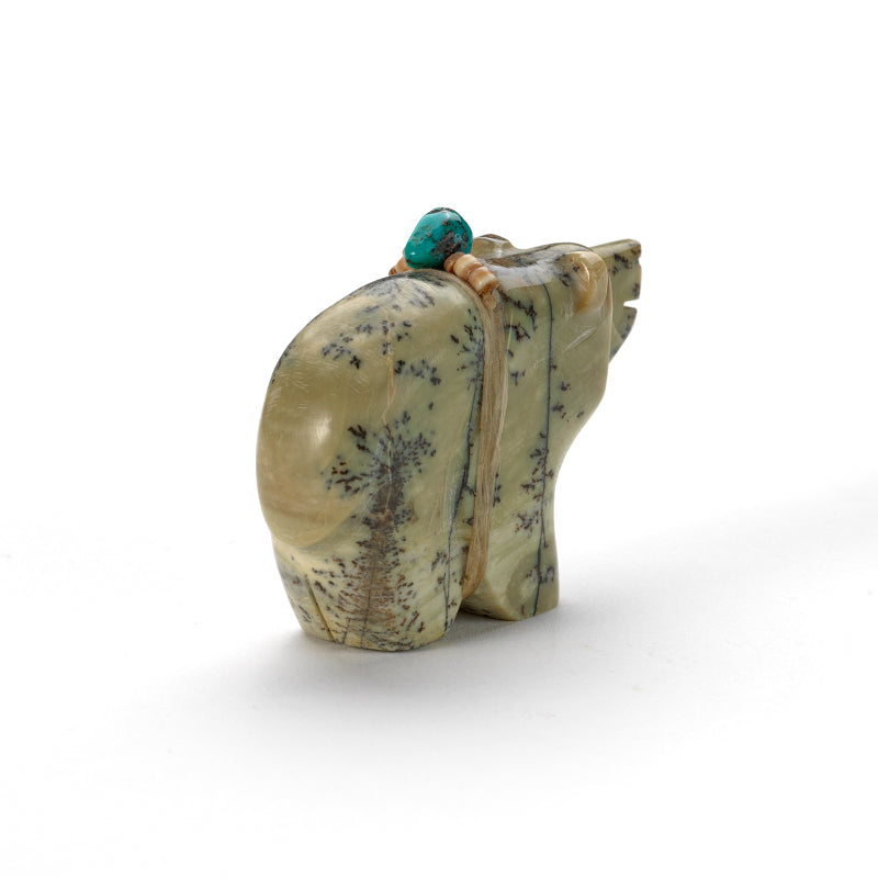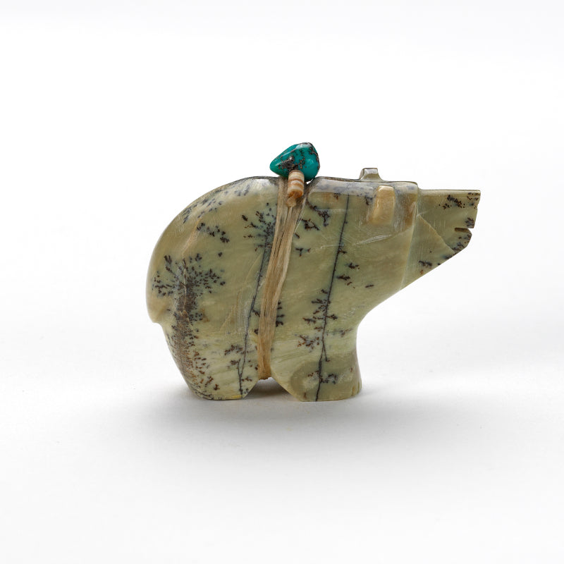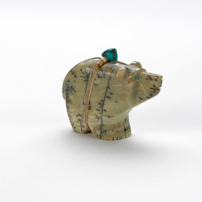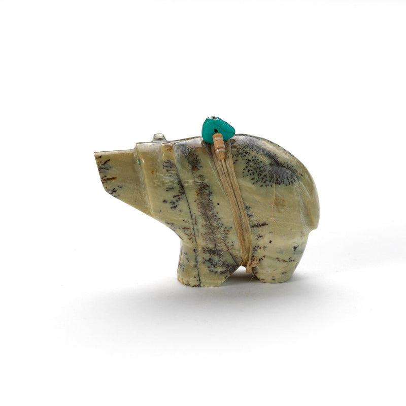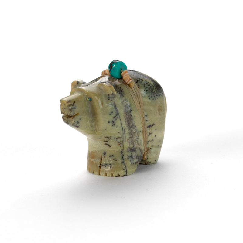 Bear (Anshe): Bear was the principal animal for the Pueblo People and they are the most prevalent subject of Zuni fetishes. Bear fetishes are used for healing, protection, strength, journeying, mothering, hunting and gathering. Bear‚ hibernation reminds us of the value of going within.