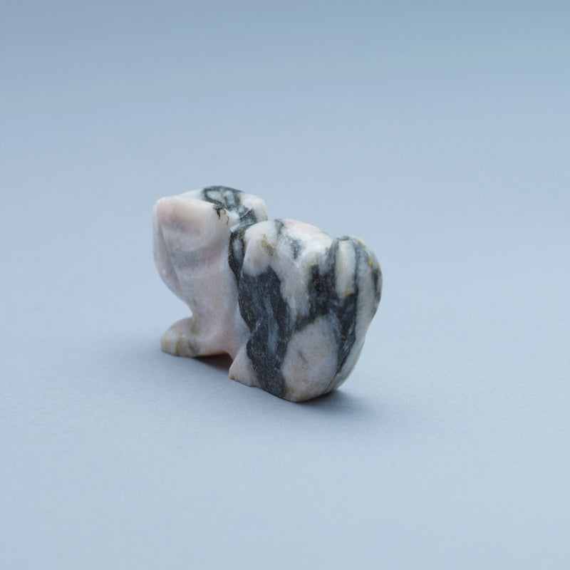The choice of marble, a material synonymous with strength and beauty, adds a sense of timelessness to this exquisite piece. And those striking turquoise eyes, they seem to pierce through the very soul of anyone who gazes upon them, commanding attention and intrigue. This rabbit evokes a sense of mystery, its silent presence commanding reverence and respect. It is a true work of art that captivates all who behold it, leaving an indelible mark on their hearts and minds.