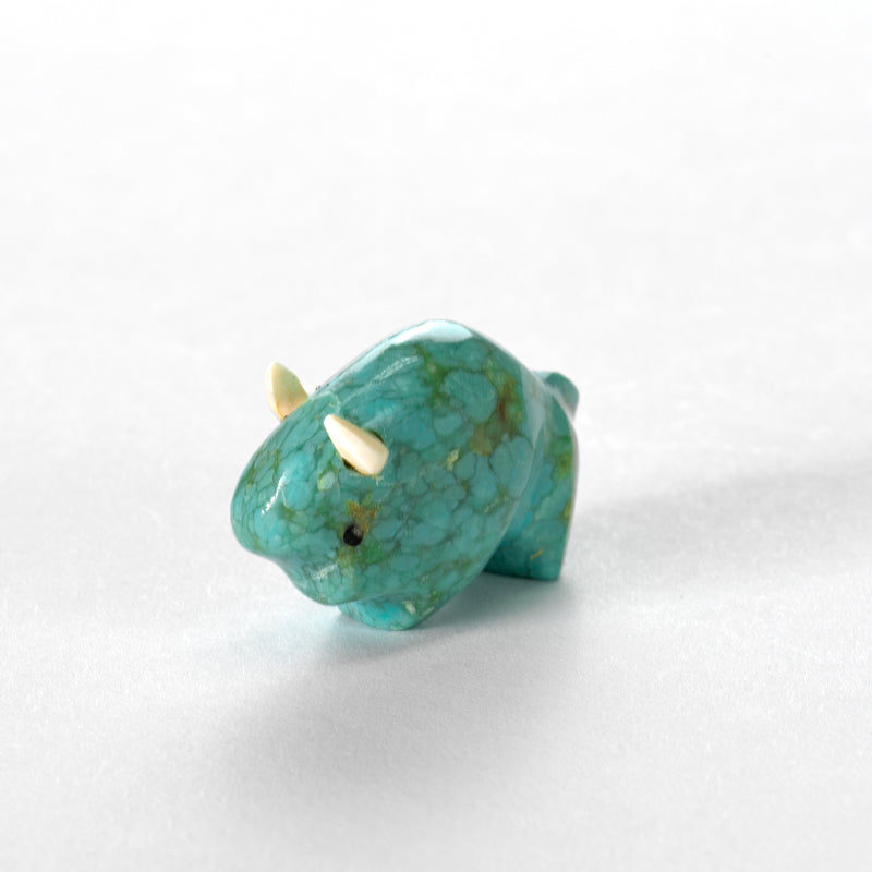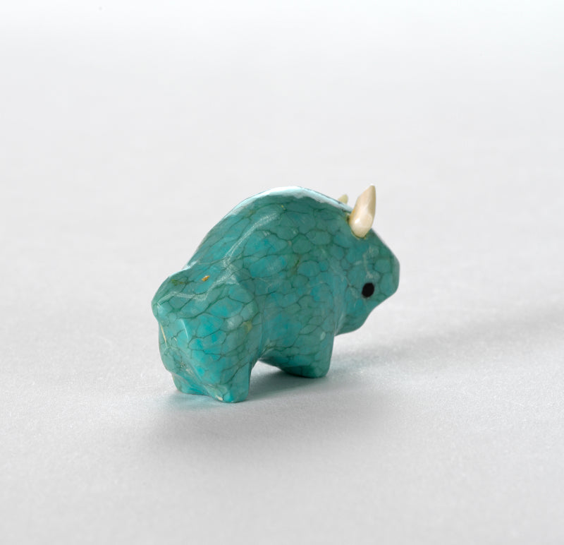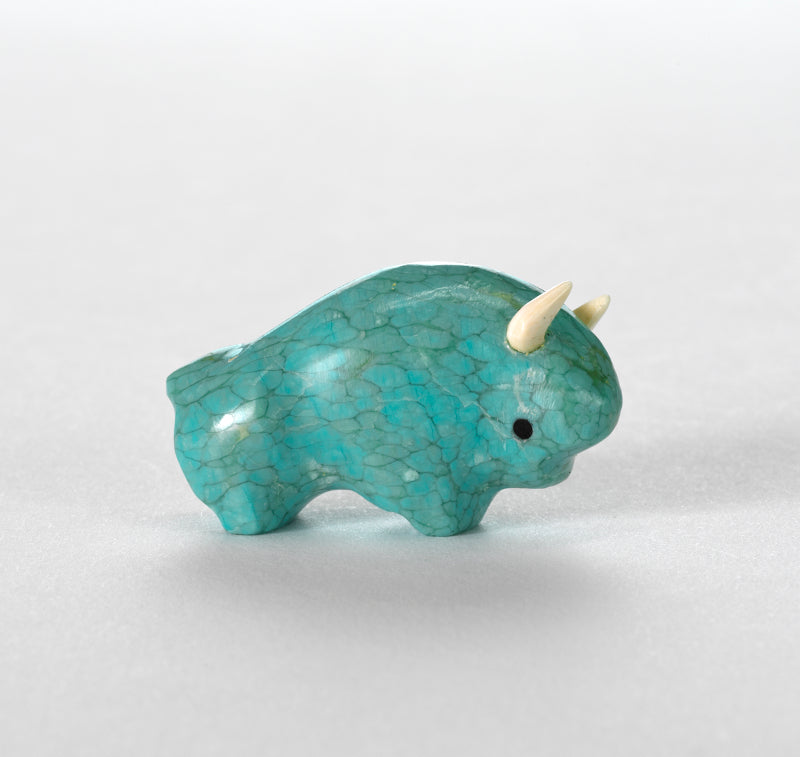 Bison (Si:wolo) is especially important to the Plains Indians. These magnificent animals were the basis of their lifeway before they were hunted to extinction by the white man. While not a traditional fetish subject for the Zunis, all animals have meaning and Bison reminds us of abundance and prayer.