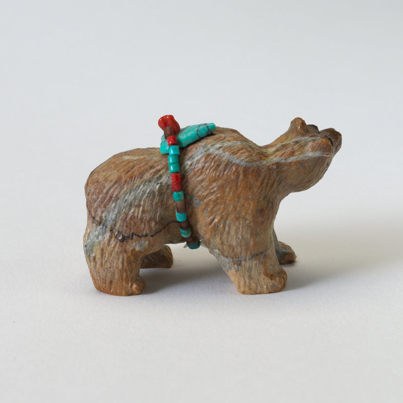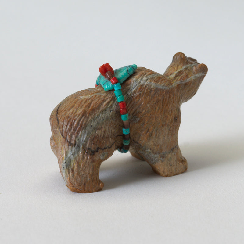 Bear (Anshe): Bear was the principal animal for the Pueblo People and they are the most prevalent subject of Zuni fetishes. Bear fetishes are used for healing, protection, strength, journeying, mothering, hunting and gathering. Bear‚ hibernation reminds us of the value of going within.