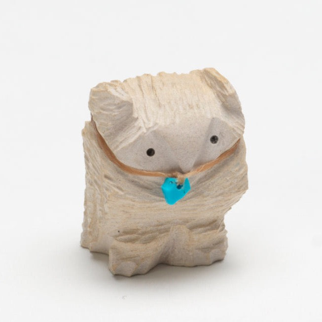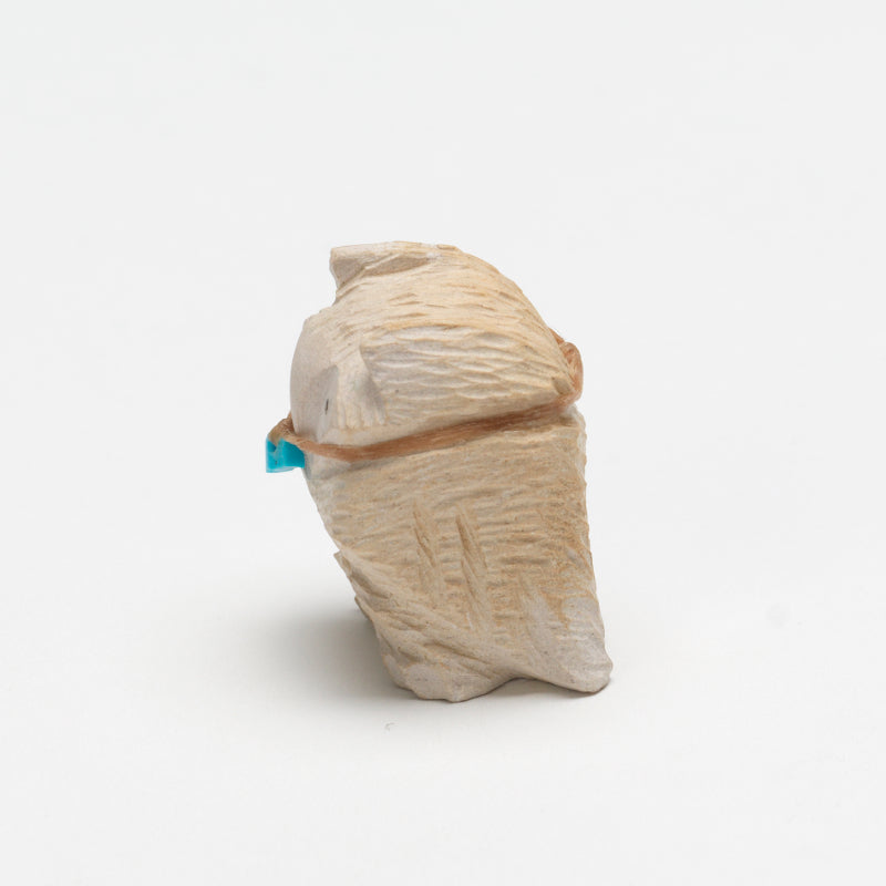 The contrast between the rich blue color of the turquoise and the earthy tones of the fish rock is just perfect. This little owl would definitely make a unique and eye-catching addition to any collection or even as a standalone piece. Plus, owls symbolize wisdom and intuition, so having one around can bring some positive vibes into your life.